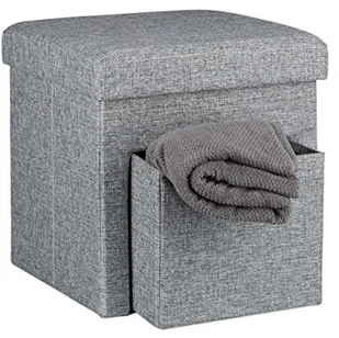 szarym, brązowym, czarnym i białym - Pojemność: ok. 40 litrów - Zdejmowana pokrywa - Nośność: do ok. 300 kg - Lepsze uporządkowanie przestrzeni do przechowywania dzięki dodatkowej przegrodzie (19 litrów)Stylowy składany taboret wykonany z lnu - Solidny taboret, który wytrzyma duże obciążenia - Duża przestrzeń do przechowywania zabawek, tkanin, poduszek, katalogów i wielu innych przedmiotów - Możliwość szybkiego i łatwego schowania, gdy przestrzeń jest ograniczona - Modny, prosty design przyciągający wzrok w domu - Może być jako stołek, podnóżek lub półkaZakres dostawy - Składany stołek - Dodatkowa pokrywa - Podstawa - Elementy dekoracyjne nie wchodzą w zakres dostawy