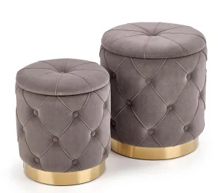 Kropelka elegancji, szczypta blasku i garść luksusu to idealny sposób na wnętrze w stylu złotej ery Hollywood. Praktycznie, komfortowo, stylowo Komplet puf marki Elior to wyjątkowe połączenie wybitnego stylu, elegancji i materiałów najwyższej klasy. Pufy mają klasyczną okrągłą formę z miękkim komfortowym siedziskiem. Tapicerowane otwierane siedzisko kryje praktyczny schowek na drobiazgi. W schowku zmieszczą się wszystkie niezbędne przedmioty, które lubisz mieć pod ręką, a jednocześnie łatwo i szybko je schowasz, gdy nie będą potrzebne .