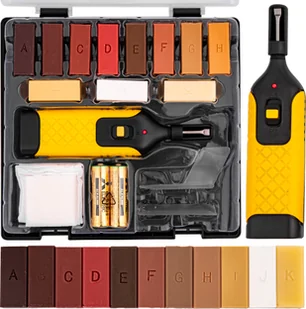 Rozgrzany wosk wypełnia ubytek, a po wyschnięciu twardnieje i tworzy warstwę ochronną ZAWARTOŚĆ ZESTAWU: pałeczki woskowe w różnych kolorach 11 szt urządzenie do topienia wosków, baterie szpachelka czyścik materiał polerski instrukcja obsługi w języku polskim walizeczka SPOSÓB UŻYCIA: 1. Rozgrzanym rysikiem nabieramy pożądany kolor wosku 2. Wypełniamy ubytek, czekamy do wyschnięcia wosku3. Przy pomocy tarnika usuwamy nadmiar wosku4.