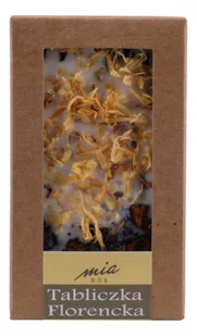 Tabliczka Florencka – wszystkie zapachy: Ręcznie wykonana, niepowtarzalna tabliczka z wosku sojowego z dodatkiem olejków zapachowych, masła shea, suszonych kwiatów, owoców, ziół, ziaren oraz innych ekologicznych zdobień. Powoli uwalniając swój piękny zapach aromatyzuje pomieszczenia i poprawia nastrój. To estetyczny nośnik wspaniałych nut zapachowych, które równocześnie służą jako unikalne elementy dekoracji. Tabliczka florencka jest naturalnym, ekologicznym zamiennikiem syntetycznych zawieszek zapachowych do szerokiego zastosowania.