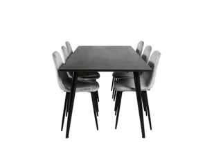 Zestaw stołowy Dipp180x90BLBL, stół jadalniany w kolorze czarnym i 6 krzeseł Polar Diamond w kolorze szarym welurowym, to zestaw stołowy w kolorze, który wniesie do Twojego domu zarówno styl, jak i funkcjonalność. Zestaw stół do jadalni Dipp180x90BLBL, stół do jadalni w kolorze czarnym i 6 krzeseł Polar Diamond w kolorze szarym welurowym. Stół Dipping 60-18102-888. stół cm: dł. 180 x gł. 90 x wys. 75. stół: MDF, stal. Krzesło Polar Diamond 60-19246-855. 6 szt. cm: szer. 44 x wys. 86 x gł. 52. Wysokość siedziska cm: