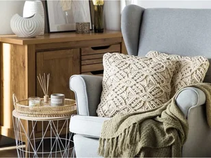 Poliester. Skład materiału: 100% Bawełna Waga: 3 Montaż: Nie wymaga montażu Cechy produktu: Łatwe w pielęgnacji i wytrzymałe materiały, Wykonano ręcznie z dbałością o detale, Połączenie piękna z funkcjonalnością, Tworzy przytulną, ciepłą atmosferę, Wytworny wyglądDetale: Rodzaj: DekoracjeMateriał: