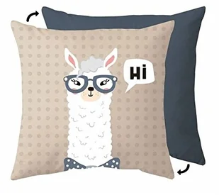 GEDA LABELS 12027 poduszka Lama - "Hi", przód z motywem, tył jednokolorowy, ok. 40 x 40 cm, niebieski/beżowy