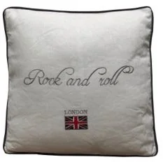 My Flair 23.11SF poduszka, 40 x 40 x 9 cm z wypełnieniem, 40% bawełna, 30% len, 20% wiskoza, 10% poliester, pranie ręczne, biała, z napisem Rock and Roll