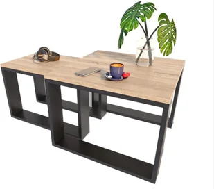 Elior Komplet dwóch stolików kawowych dąb sonoma + czarny - Juna
