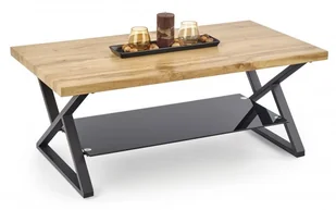 Halmar Ława ze szklaną czarną półką XENA PROSTOKĄT na metalowej czarnej podstawie