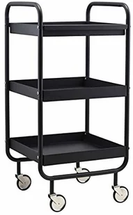 Stolik wykonany z metalu w kolorze czarnym. Posiada trzy piętra. Kółka posiadają gumową oponkę, dzięki czemu nie będą rysować podłogi.