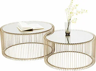 Kare Design stolik kawowy Wire Gold 2-częściowy zestaw, okrągły, nowoczesny stolik szklany, duży stolik pomocniczy, stolik do kawy, stolik nocny, mosiądz (wys./szer./głęb.) 30,5 x 60 cm i 33,5 x 69,