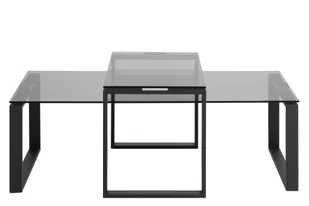 Szkło szer. 115 x wys. 45 x gł. 55 cm waga ok. 29,7 kg Zestaw stolików kawowych Kate z przydymionego szkła i metalu w kolorze matowej czerni to kolorowy stolik kawowy, który wniesie do Twojego domu zarówno styl, jak i funkcjonalność. Zestaw stolików kawowych Kate z przydymionego szkła i metalu w kolorze matowej czerni. Produkt ten został wykonany z wielką dbałością o szczegóły, zapewniając zarówno estetykę, jak i wysoką trwałość.