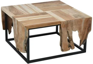 Ten stolik boczny marki Ambiance prezentuje prosty, a zarazem stylowy design oraz wniesie odrobinę rustykalnego uroku do Twojego salonu, jadalni lub sypialni. Stolik został profesjonalnie wykonany z trwałego drewna z korzeni drzewa tekowego oraz jest bardzo funkcjonalny. Dzięki czarnym, metalowym nogom mebel ten jest mocny i można go łatwo przestawiać. Może on posłużyć również jako stolik nocny. Oferuje on wystarczającą ilość miejsca na blacie do postawienia książek, czasopism, filiżanek z kawą itp.