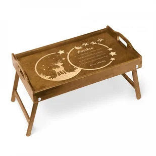 Stolik drewniany śniadaniowy brązowy z grawerem dla niej na święta