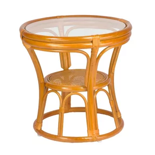 Stolik "RattaNeo Coral s215" to wyjątkowy mebel rattanowy, który dodaje elegancji i stylu Twojemu wnętrzu. Wykonany z rattanu naturalnego o kolorze koniakowym, ten okrągły stolik o wysokości 52 cm i średnicy 54 cm doskonale wpisuje się w różne aranżacje mieszkań. Stolik "RattaNeo Coral s215" oferuje wiele możliwości zastosowania. Może pełnić funkcję designerskiego stolika kawowego w salonie, praktycznego stolika bocznego obok sofy czy jako elegancki stolik nocny w sypialni. Jego kształt i rozmiar sprawiają, że idealnie pasuje zarówno do mniejszych, jak i większych przestrzeni, dodając im niepowtarzalnego charakteru i uroku.