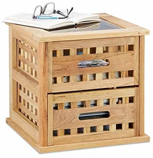 x gł. : ok. 23,5 x 23,5 cm - Materiał: drewno orzechowe, szkło - Waga: ok. 4,2 kg Konsola nocna z miejscem do przechowywania - 2 wyjmowane szuflady - Szafka nocna z kwadratową podstawą - Dekoracyjna konstrukcja kratowa - Naturalne drewno orzechowe w ciepłych odcieniach - Szklany blat zapewnia szybki widok - 2 wieszaki ścienne z tyłu Zakres dostawy - 1 x stolik boczny w pojedynczych częściach - Z materiałem montażowym - Z instrukcją - Elementy dekoracyjne nie wchodzą w zakres dostawy