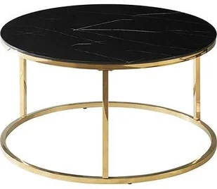 Stolik okrągły czarny SABINE z efektem marmuru, na złotej podstawie, glamour