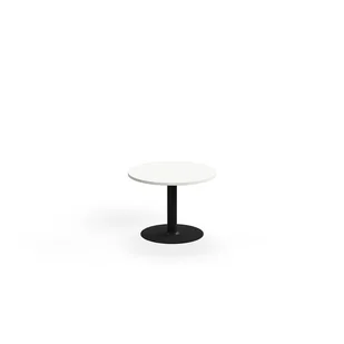 Okrągły blat z laminatu wysokociśnieniowego HPL zapewnia gładką, twardą i wytrzymałą powierzchnię. Laminat jest łatwy do utrzymania w czystości i umożliwia szybkie usunięcie śladów po filiżankach i kubkach. Podstawa cokołu zakończona jest dużą, okrągłą stopą, dzięki której stół jest stabilny.