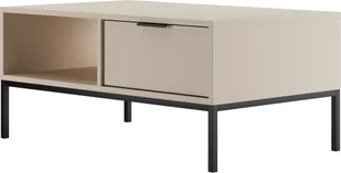 Polski stolik kawowy AUSTIN z półką Stolik kawowy AUSTIN to niezwykle funkcjonalny mebel o kompaktowych rozmiarach, idealny do salonu czy kącika wypoczynkowego. Wyposażony w praktyczną półkę po lewej stronie oraz dwie szuflady po prawej, zapewnia wygodną przestrzeń do przechowywania różnorodnych przedmiotów. Polski producent zadbał o najdrobniejsze detale, tworząc mebel, który nie tylko zachwyca atrakcyjnym wyglądem, ale także cechuje się solidnością i funkcjonalnością. Ten elegancki stolik kawowy wykonany został z 18 mm płyty wiórowej o modnym kolorze kaszmiru (odcień beżu). Krawędzie płyty zostały wykończone obrzeżami ABS/PCV o grubości 0,8 mm, co nie tylko dodaje estetyki, ale także chroni mebel przed wilgocią i uszkodzeniami mechanicznymi, zapewniając jego wysoką trwałość na lata.