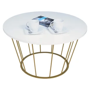 1,8 cm. Gwarancja: 10 lat (inni producenci oferują maksymalnie 24 miesiące gwarancji. Tylko u nas otrzymujesz pełną jakość potwierdzoną aż 10-letnią gwarancją). Materiał: najwyższej jakości metal pomalowany proszkowo profesjonalnym barwnikiem Wixer 7XT odpornym na zarysowania i zadrapania, płyta laminowana o podwyższonej trwałości i gęstości 684 kg/m3 wg badania normy EN 323. Kolor: stelaż: złoty, blat: biały. Kliknij w link i sprawdź także inne druciane stoliki kawowe w sklepie Edinos. pl. Stwórz swóją praktyczną przestrzeń.