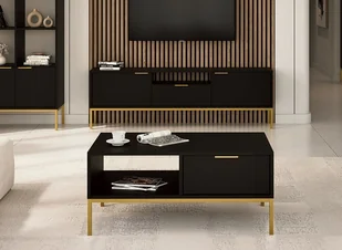 Stolik kawowy z półką i szufladami SKIEN 80 cm czarny & złoty