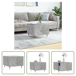 Stolik kawowy betonowy szary 50x50x40 cm materiał drewnopochodnyDodaj odrobinę elegancji do swojego salonu dzięki temu stylowemu stolikowi kawowemu. Trwały materiał: Drewno inżynieryjne to wyjątkowej jakości materiał o gładkiej powierzchni, który charakteryzuje się wytrzymałością, stabilnością i odpornością na wilgoć. Mnóstwo miejsca do przechowywania: Dzięki szufladzie stolik boczny oferuje mnóstwo miejsca do przechowywania różnych ważnych przedmiotów w porządku i w zasięgu ręki.