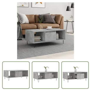 Stolik kawowy betonowy szary 90x50x36,5 cm materiał drewnopochodnyDodaj odrobinę elegancji do swojego salonu dzięki temu stylowemu stolikowi kawowemu. Trwały materiał: Drewno inżynieryjne to materiał wyjątkowej jakości o gładkiej powierzchni, który charakteryzuje się wytrzymałością, stabilnością i odpornością na wilgoć. Wykonany z drewna stolik boczny jest łatwy do czyszczenia wilgotną ściereczką. Dużo miejsca do przechowywania: