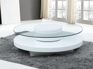 Praktyczny i oryginalny, z obrotowym blatem, wyszukany dzięki konstrukcji z dwóch rodzajów materiału: hartowanego szkła i lakierowanej na biało płyty MDF stolik RYHALI ma wszystko, by się podobać!