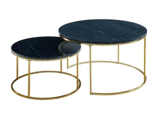 Nowoczesny wymiar marmuru w stolikach kawowych ANGELA. Blaty wykonane z marmuru kontrastują ze złotym kolorem metalowych nóg, nadając im bardzo elegancki wygląd. Doskonale sprawdzą się w klasycznym salonie, gdzie będą przyciągać spojrzenia.