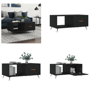 Stolik kawowy czarny 90x50x40 cm materiał drewnopochodnyDodaj odrobinę elegancji do swojego salonu dzięki temu stylowemu stolikowi kawowemu. Trwały materiał: Drewno konstrukcyjne to wyjątkowej jakości materiał o gładkiej powierzchni, który charakteryzuje się wytrzymałością, stabilnością i odpornością na wilgoć. Dużo miejsca do przechowywania: Ten stolik boczny oferuje dużo miejsca do przechowywania, dzięki czemu ważne przedmioty są uporządkowane i łatwo dostępne.