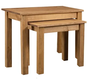 Przedstawiamy zestaw 2 wsuwanych pod siebie stolików kawowych marki Elior, idealny dodatek do nowoczesnych i stylowych wnętrz. Jeśli szukasz mebli, które łączą w sobie elegancję, funkcjonalność i trwałość, te stoliki są stworzone dla Ciebie. Wykonane z najwyższej jakości litego drewna sosnowego, są dziełem sztuki użytkowej, przynoszącej do domu ciepło naturalnego drewna i ponadczasową elegancję. Oto co sprawia, że stoliki są wyjątkowym dodatkiem do każdego wnętrza: Zestaw składa się z dwóch stolików wykonanych z litego drewna sosnowego.