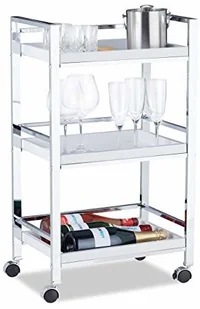 Niezależnie od tego, czy serwujesz napoje gościom na przyjęciu, czy trzymasz pod ręką przybory kuchenne, wózek do serwowania jest praktycznym narzędziem. Na 3 poziomach można umieścić butelki z napojami, gorące lub zimne posiłki, przyprawy lub przybory kuchenne. 3 plastikowe tace do serwowania można wyjmować pojedynczo, co sprawia, że są one szczególnie przydatne do odstawiania lub sprzątania. Boczne i tylne rozpórki zapobiegają spadaniu wyższych przedmiotów, takich jak butelki. Otwarta konstrukcja zapewnia również dobry przegląd zawartości.