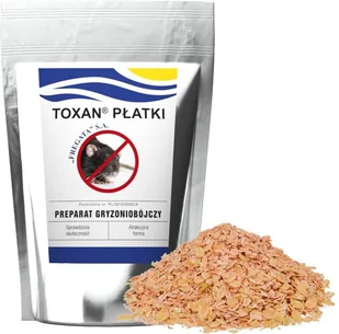 Preparat na myszy, szczury Toxan ma postać płatków, które traktowane są przez gryzonie jak pokarm. Rolę rodentycydu w płatkach pełni bromadiolon. To jednodawkowa substancja drugiej generacji- wystarcza już jedno karmienie, aby pozbyć się szczura, myszy. Forma płatków jest jeszcze bardziej skuteczna jeśli gryzonie, które zwalczasz przywykły do pokarmu tego typu.