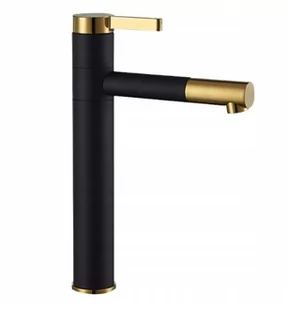 Bateria umywalkowa /wysoka/ Smart Black/Gold Prezentujemy Państwu piękną, niezwykle funkcjonalną i nowoczesną baterię. Jest to produkt, który w doskonały sposób wypełni Państwa przestrzeń łazienkową zachowując nienaganny wygląd i estetykę wnętrza. Bateria jest przystosowana do montażu na blacie przy umywalce. Została wykonana z mosiądzu pokrytego pięknym, matowym czarnym kolorem ze złotymi wstawkami. Dzięki specjalnej fazie produkcji jest trwała i łatwa w utrzymaniu czystości.