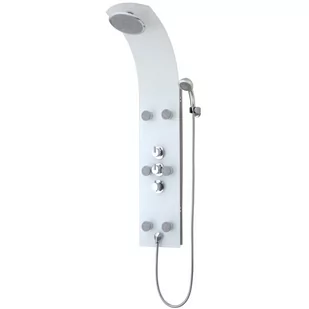Kolor: biały Materiał: metal Wymiary panelu z 8-milimetrowego szkła bezpiecznego: 133 x 28 x 48 cm (dł. x szer. x wys.) Długość metalowego węża prysznicowego: ok. 170 cm Średnica deszczownicy: ok. 20 cm Średnica słuchawki prysznicowej z uchwytem: