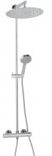 Bateria z regulatorem termostatycznym miesza ciepłą i zimną wodę, pozwalając na utrzymanie idealnej temperatury. Ma również system Safe Stop 38°C, który blokuje gorącą wodę, chroniąc przed poparzeniem. Rączka natrysku ma 3 stopnie strumienia, a wąż natryskowy w oplocie metalowym ma długość 150 cm. Zestaw został wyposażony w ceramiczny przełącznik zmieniający funkcje deszczownica-natrysk. Całość zestawu została stworzona w chromowanym odcieniu, który można dopasować do każdego wnętrza i skomponować z armaturą łazienkową.