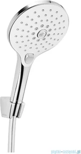 Oltens Saxan EasyClick Gide zestaw prysznicowy chrom/białyKod produktu: 36006110Kolor: chrom/białyŚrednica główki 130 mm3 rodzaje strumienia: strumień deszczowy, miękki, masującyZmiana strumienia przyciskiem Oltens EasyClick, umożliwia obsługę słuchawki jedną rękąPrzepływ max. (przy 3 bar):