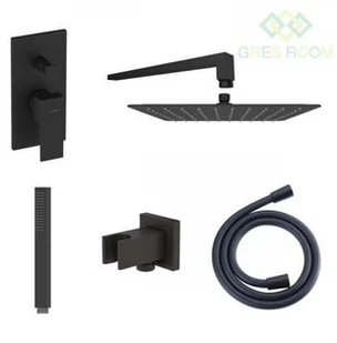 Oltens Zestaw Gota bateria podtynkowy z deszczownicą 30 cm Vindel (S) i kompletem prysznicowym Sog czarny mat