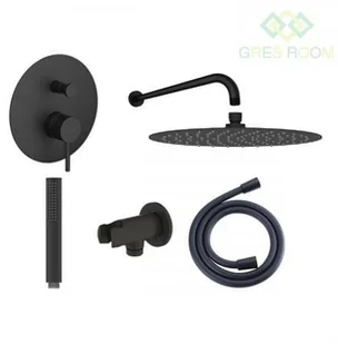 Oltens Zestaw Molle bateria podtynkowa z deszczownicą 30 cm Vindel i kompletem prysznicowym Ume czarny mat