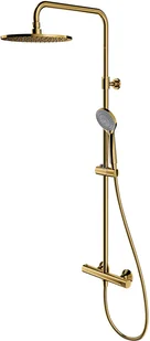 Kolekcja OMNIRES Y zachwyca czystą linią i nieskazitelną formą, będącą wyrazem pasji w dążeniu do ideału. Inspirację i podstawę dla projektu stanowił kształt koła. Ponadczasowy, perfekcyjnie dopracowany wzór stworzony w duchu minimalizmu daje maksymalne możliwości aranżacyjne. Złoto jest szlachetnym wykończeniem o eleganckim, jasnym odcieniu i idealnie gładkiej, lśniącej powierzchni.Specyfikacja techniczna: termostatyczna bateria prysznicowa deszczownica mosiężna (WG125GL), rozmiar: o25 cm, zasięg od ściany: 43 cm rączka prysznicowa (YOSEMITE-RGL), 5-funkcyjna, rodzaj strumienia: masaż, mgła, napowietrzony masaż, napowietrzona mgła, napowietrzony deszcz wąż prysznicowy w osłonie PVC (023-XGL), długość: 150 cm przełącznik strumienia deszczownica/rączka wbudowany w pokrętło regulacji wody regulowana wysokość, minimalna/maksymalna wysokość systemu: 93 cm/156 cm blokada gorącej wody przy 38°C