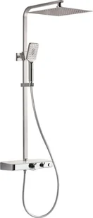 8 x 25 cm (szer. x dł.)Z baterią termostatyczną i zintegrowaną półką z bezpiecznego szkła, 35 x 14 cmZewnętrzny korpus baterii: ABSDuża, spawana laserowo głowica prysznicowa ze stali nierdzewnej, średnica 300 mmDysze zapobiegające osadzaniu się kamieniaNowoczesny prysznic ręczny z 3 rodzajami strumieniaMetalowy drążek prysznicowy z regulowaną rurą pionową, 80-120 cmWąż prysznicowy Silverflex, 1500 mmPrzełączanie za pomocą przycisku (przełączanie między głowicą a główką prysznicową)Wymienny element termostatyczny i wkład ze znakiem towarowymSkala temperatury z zabezpieczeniem przed dziećmi przy 38 °C