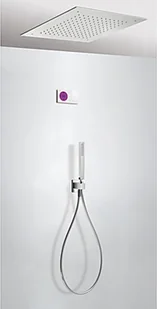 Tres podtynkowy termostatyczny elektroniczny zestaw prysznicowy Shower Technology, chrom 09286561 kolor: chrom dołączony system sterowania elektronicznego w kolorze białym zawiera elektroniczną kontrolkę centralkę termostatyczną (dwudrożna) natrysk sufitowy ze stali nierdzewnej 500x500 mm uchwyt do słuchawki słuchawka wąż podtynkowa