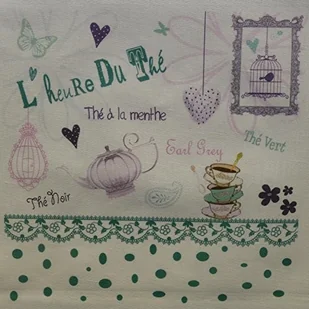 La Boîte à Broder COU049VMB kupon z nadrukiem "L'Heure du Thé" (Teestunde), len/Métis, zielony/niebieski/biały