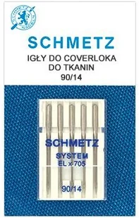 Igły półpłaskie Schmetz ELx705 VDS przeznaczone do coverloków, owerloków oraz nielicznych maszyn domowych z symbolem igły ELx705. Igła Schmetz ELx705 jest odpowiednikiem igieł Singer 2022 lub Organ 15x1SP. Opakowanie zawiera 5 sztuk igieł do szycia dzianin i tkanin o grubości 90. Igły pasują między innymi do maszyn: Janome 1000CPX, 2000CPX, 1200D Elna EasyCover, 444, 745 Juki MO-50e Singer S14-78 Warto wiedzieć: