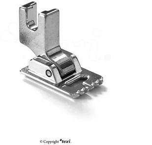 Stopka ze specjalnymi rowkami umożliwiającymi wszywanie i równe prowadzenie kordu i cienkich wypustek. Idealna do delikatnych tkanin.