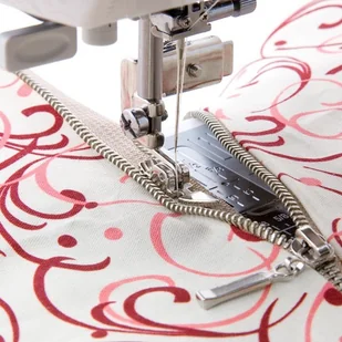 Stopka dwustronna, regulowana, wąska (szerokość płozy 6 mm) do wszywania zamków. Idealnie sprawdza się podczas szycia w trudno dostępnych miejscach.