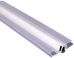 Uszczelka magnetyczna do drzwi kabin prysznicowych. Pomiędzy częścią zakładaną na szybę, a magnesem znajduje się elastyczna przepona ułatwiająca dopasowanie sie uszczelek, dedykowane do drzwi półokrągłych.