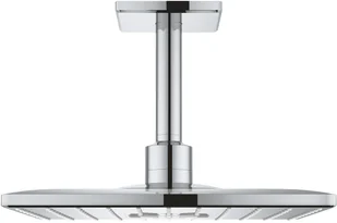 Deszczownica GROHE Rainshower 310 SmartActive Cube z przepustem stropowym, to połączenie stylowego designu i najwyższego komfortu użycia, które sprawdzi się doskonale w każdej nowoczesnej łazience. Jej kwadratowa głowica, o wymiarach 310 x 310 mm, pozwoli dokładnie okryć całe Twoje ciało jednym z dwóch strumieni wody - delikatnym Pure Rain lub orzeźwiającym Active Rain. Niezależnie od tego, który wybierzesz, będzie on zawsze cudownie miękki i pełny, dzięki czemu zamienisz codzienną kąpiel w prawdziwie relaksujące doświadczenie. Wszystko dzięki technologii GROHE DreamSpray, która sprawia, że krople wody subtelnie pieszczą Twoją skórę, utrzymując równe ciśnienie w każdej dyszy. Aby zachować ich idealną drożność, wykonano je z silikonu SpeedClean - po prostu przetrzyj je ręką, żeby pozbyć się osądów z kamienia! Znacznie zwiększa to trwałość deszczownicy, podobnie jak chromowana powłoka GROHE StarLight, podkreślająca jej wyrazisty design i chroniąca przed uszkodzeniami.