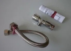 Opis produktu: - Producent: Villeroy & Boch - Seria: VIClEAN - Kod produktu: V9901900 - Zawór kątowy 1/2" x 3/8" - Wąż przyłączeniowy 1/2" x 3/8" - Długość 300 mm