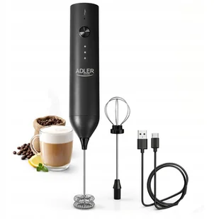 Adler AD4533 Spieniacz do Mleka 2w1, USB-C, 3 prędkości, Stal Nierdzewna, Wielofunkcyjny, Idealny do Matchy i Deserów