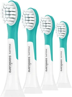 4x KOŃCÓWKA PHILIPS SONICARE HX6034/33 KIDS 4+ Główka szczoteczki Sonicare For Kids nadaje się idealnie do czyszczenia rosnących dziecięcych zębów. Działa wyłącznie ze szczoteczką elektryczną For Kids - dzięki temu połączeniu czyszczenie jest bezpieczne wpływa na budowanie dobrych nawyków. Od 3 roku życia Standardowa główka szczoteczki Philips Sonicare For Kids ma wyprofilowany kształt, który dopasowuje się do zębów dzieci od 3 roku życia, a także miękkie włosie, które umożliwia łagodne czyszczenie. Na tyle główki szczoteczki znajduje się gumowy element, który gwarantuje bezpieczniejsze, przyjemniejsze szczotkowanie. Produkt dostępny jest także w większym, standardowym rozmiarze dla dzieci od 7 roku życia.