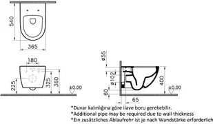 VitrA Sento Rim-Ex Zestaw Toaleta WC podwieszana 54x36,5 cm bez kołnierza + deska wolnoopadająca biała 7748B003-0075+120-003R009