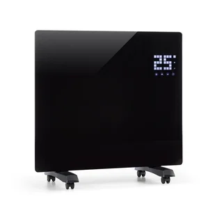 W trybie taktowania, grzejnik konwekcyjny włącza się i wyłącza z dokładnością co do minuty zgodnie z ustawieniami. Wypukły, szklany panel grzejnika Klarstein Bornholm Single jest odporny na rozpryski wody, dlatego też może być umieszczany w wilgotnych pomieszczeniach. Dzięki rolkom umieszczonym na nóżkach sprzęt można łatwo przesuwać w dowolne miejsce. Ustawień grzejnika dokonuje się przy pomocy wyświetlacza dotykowego w prawym, górnym rogu szklanego frontu. Tutaj wyświetlana jest również aktualna temperatura w pomieszczeniu.